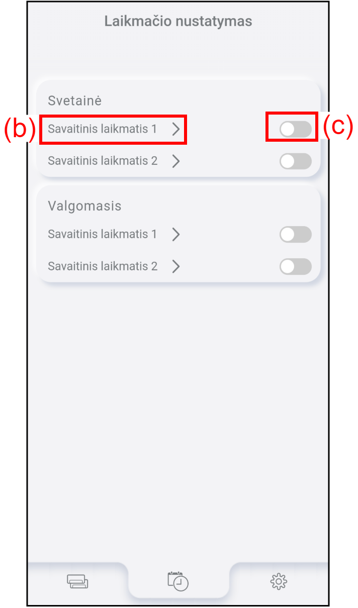 Norėdami įjungti arba išjungti savaitinį laikmatį, bakstelėkite (c).