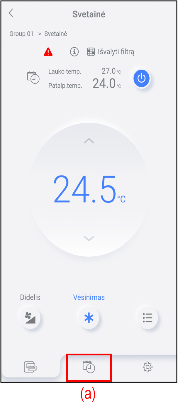 Norėdami peržiūrėti grupėje užregistruotus oro kondicionierius, bakstelėkite (b).