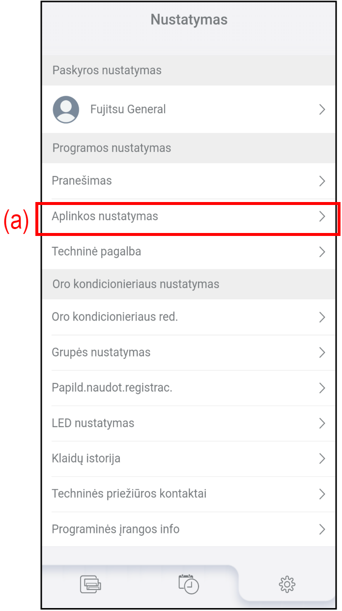 Ekrane „Aplinkos nustatymas“ galite atlikti šiuos veiksmus:
