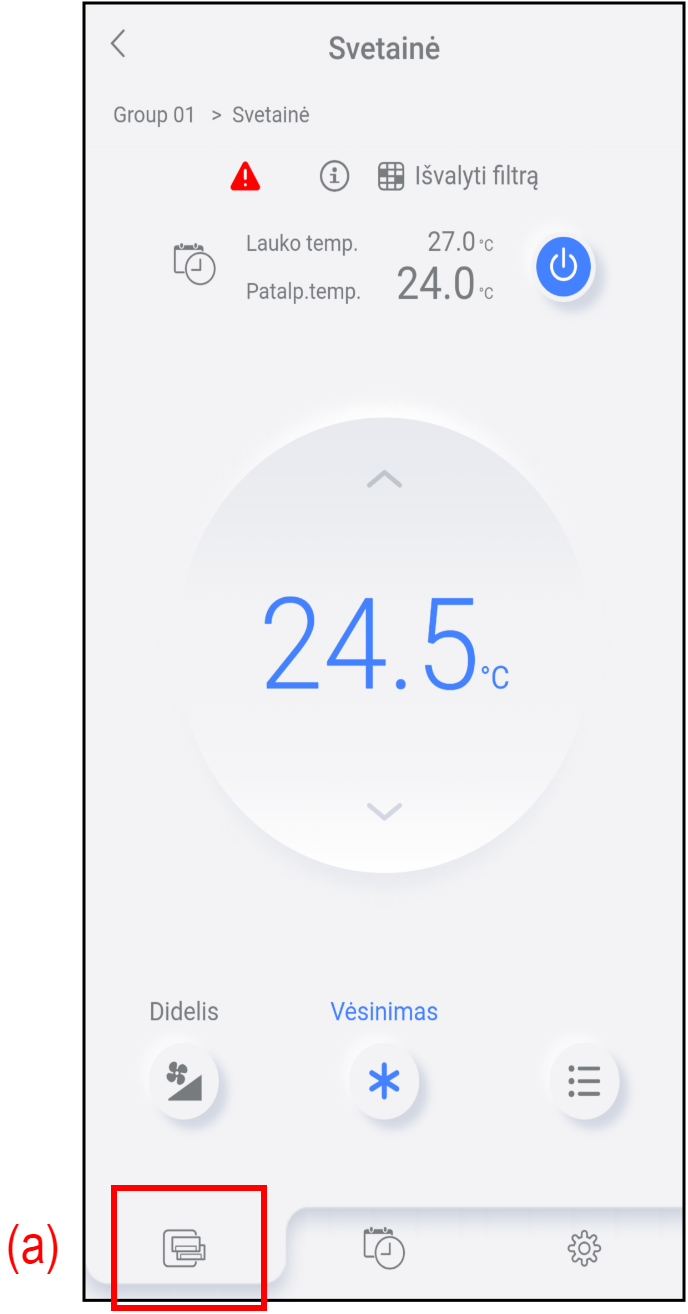 Galite įgalinti pagrindines oro kondicionierių funkcijas, naudodamiesi oro kondicionieriaus skirtuku (a) ( [