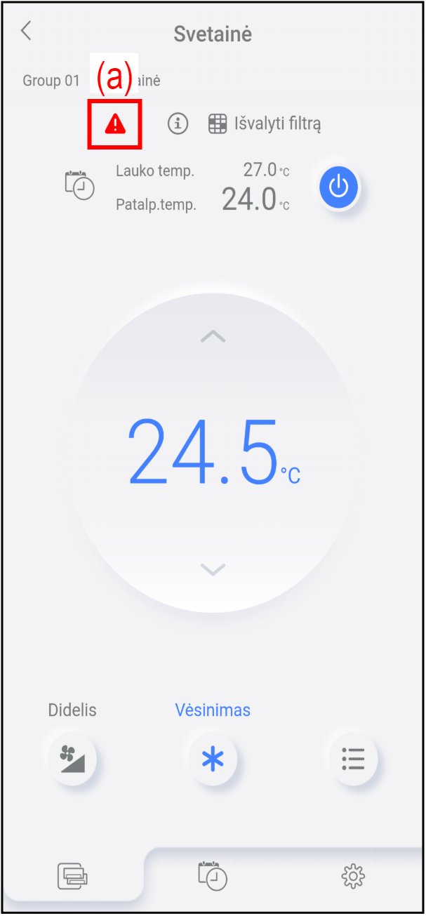 Norėdami paskambinti techninės priežiūros skyriui, bakstelėkite mygtuką (c).