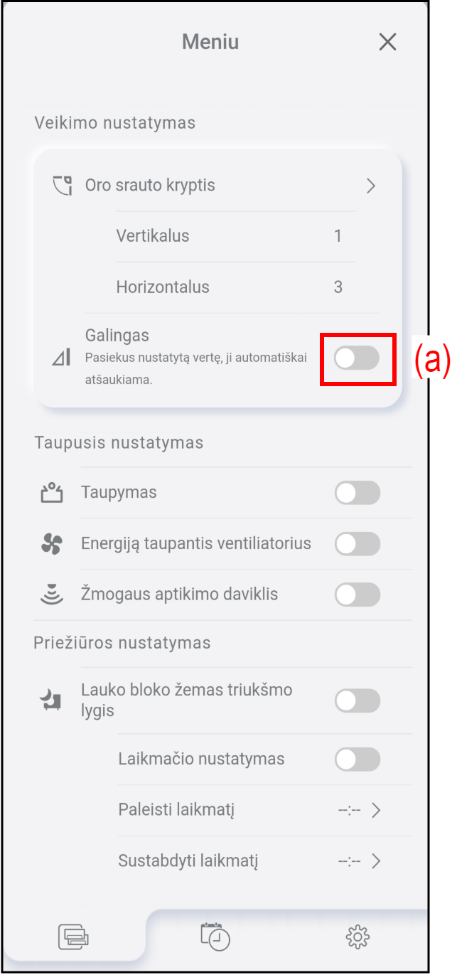 Norėdami nustatyti oro srauto kryptį aukštyn / žemyn arba kairėn / dešinėn, bakstelėkite (a).