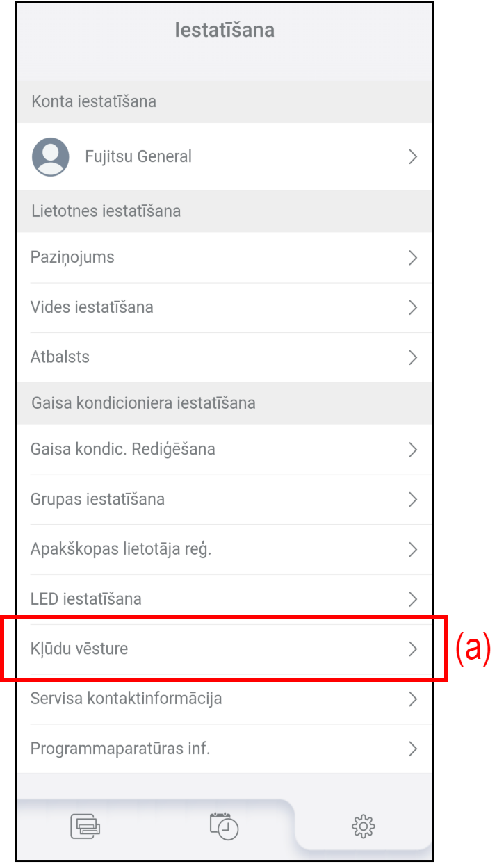 - Pieskarieties (b), lai atlasītu gaisa kondicionieri un pārbaudītu kļūdu vēsturi.
