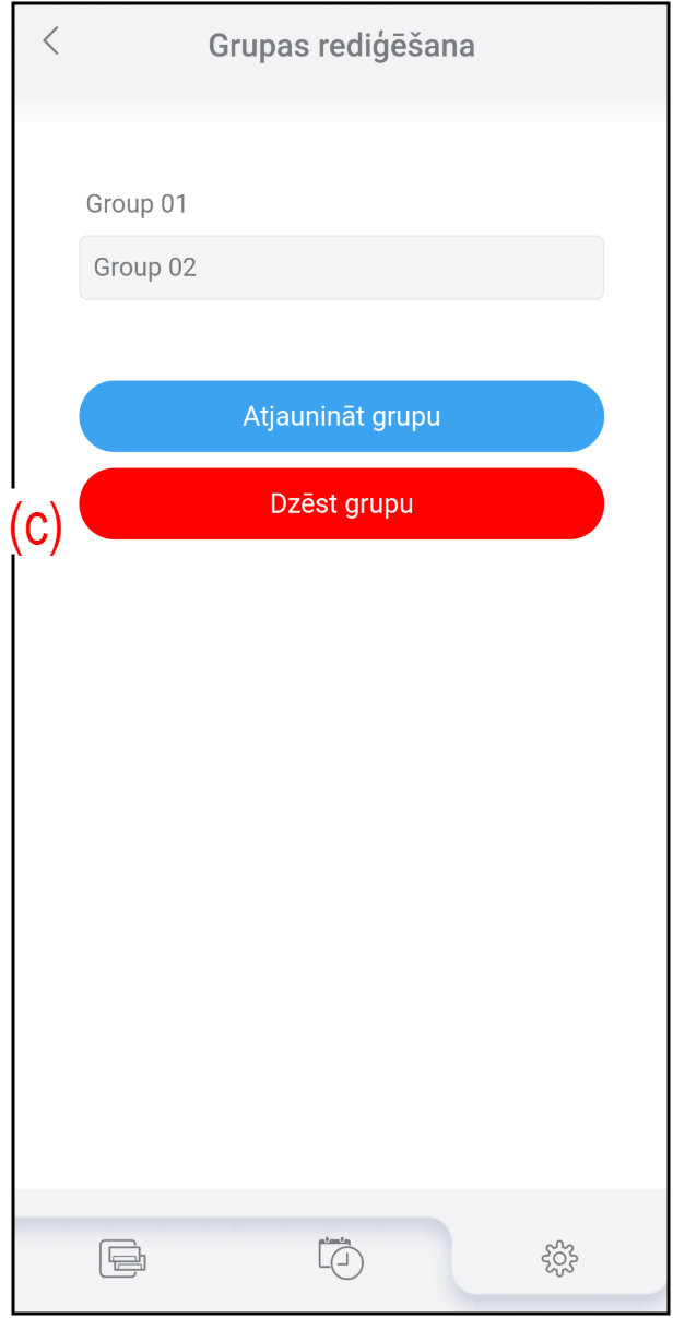 - Pieskarieties (e), lai dzēstu grupu.