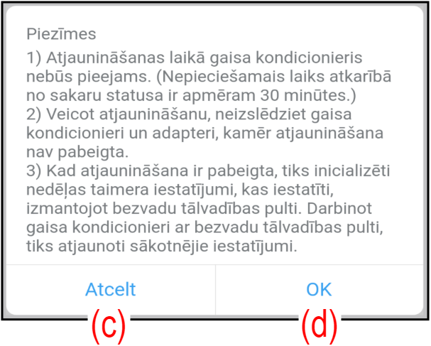 Lai aizvērtu logu, neaktivizējot automātisko programmaparatūras atjaunināšanu, pieskarieties (c).