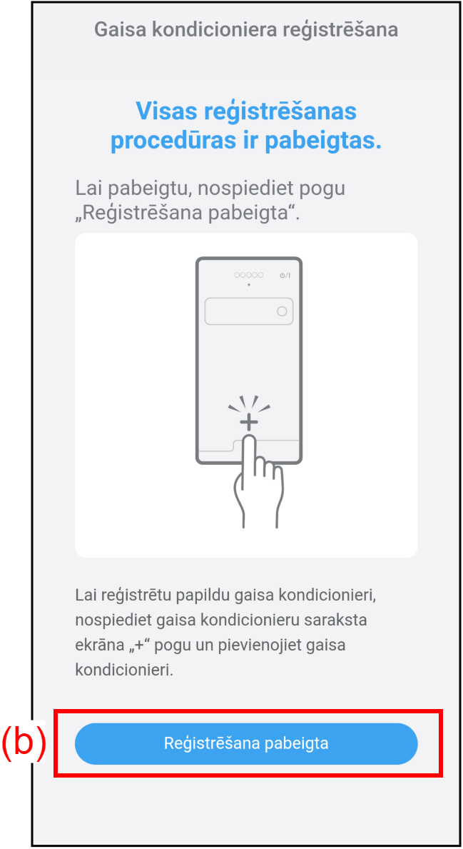 - Pieskarieties (a), lai sāktu jauna gaisa kondicioniera reģistrēšanu šajā lietotnē.