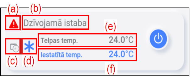 | (c) | Taimera ikona | Tā parāda, ka taimeris ir iestatīts no mobilās lietotnes. |