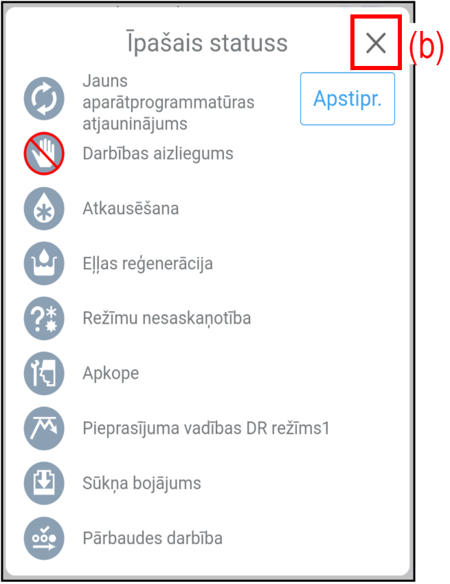 Aizliegums | Centrālais kontrolieris aizliedz darboties no šīs lietotnes. |