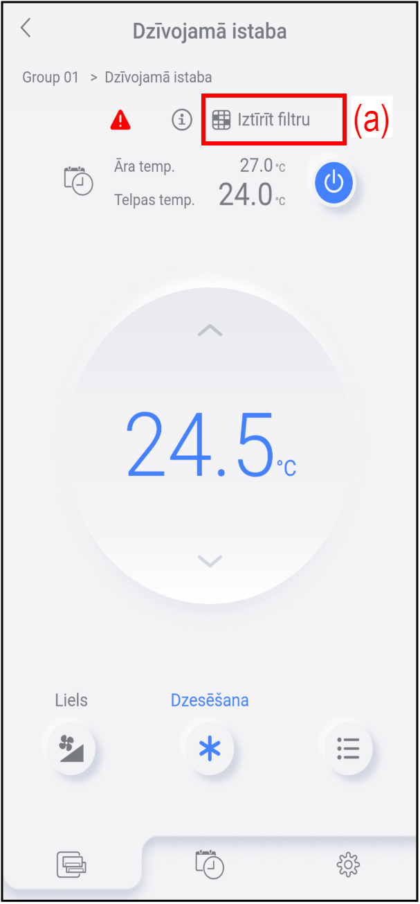 Notīriet gaisa kondicioniera filtru, pēc tam pieskarieties [OK].
