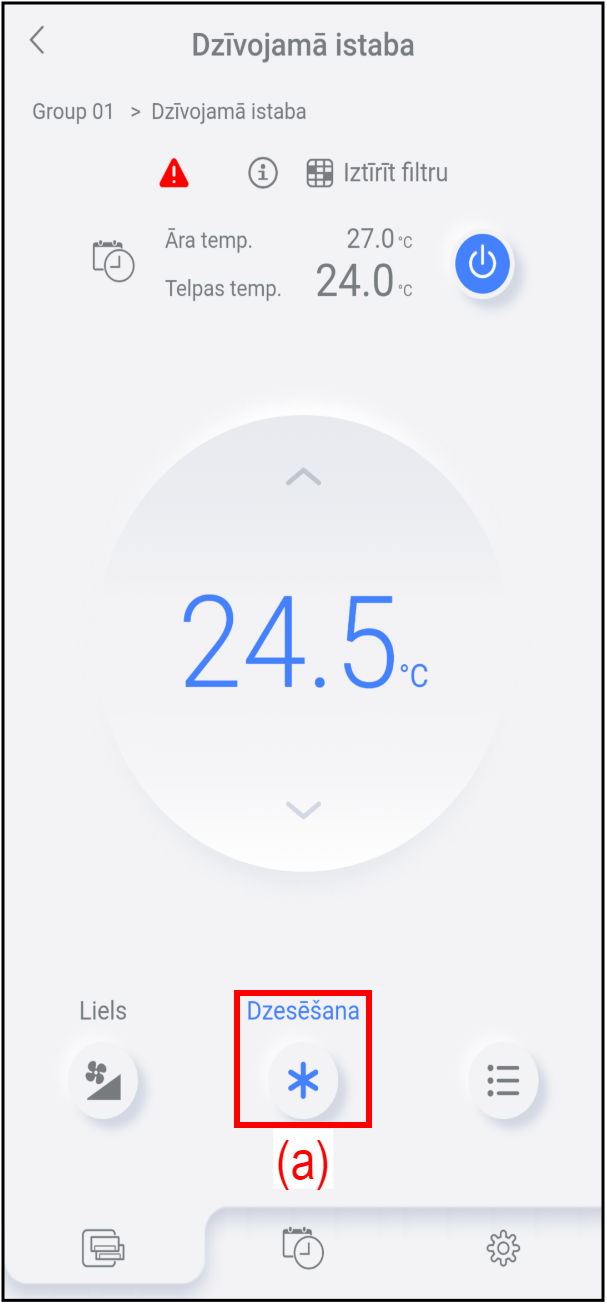 Lai mainītu darbības režīmu, pieskarieties pogai (a).