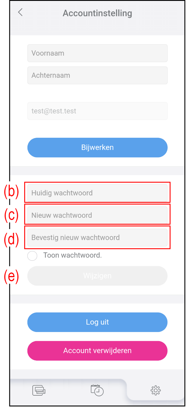 Vul het nieuwe wachtwoord in bij (c) en (d).