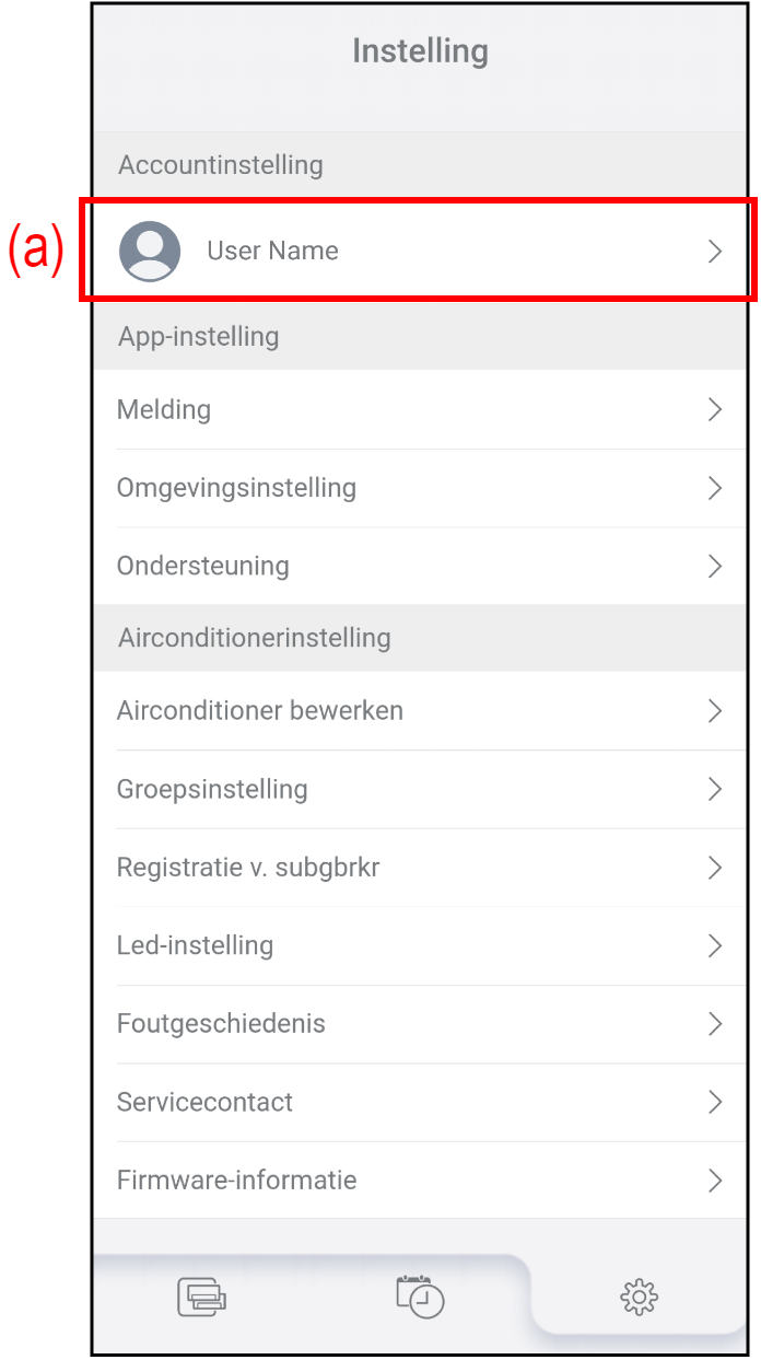 Tik op (a) op het scherm "Instelling" om uw accountgegevens en wachtwoord te wijzigen.
