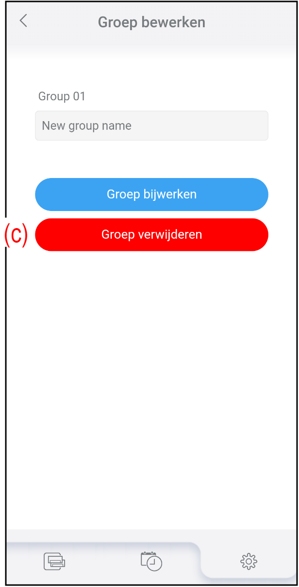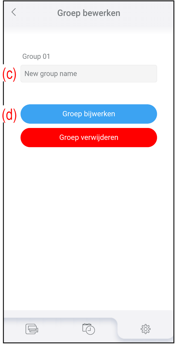 - Voer de nieuwe groepsnaam in bij (c).