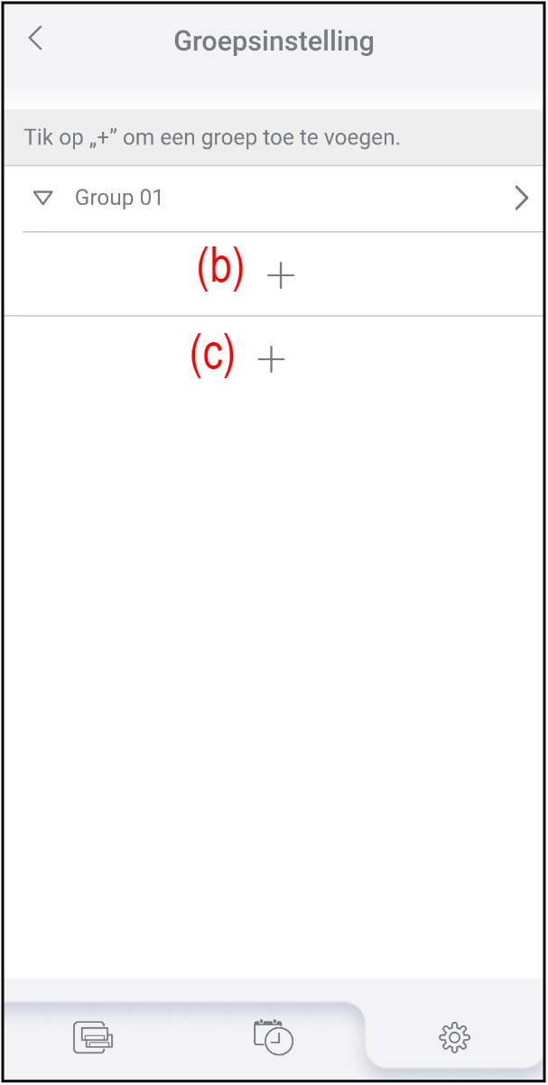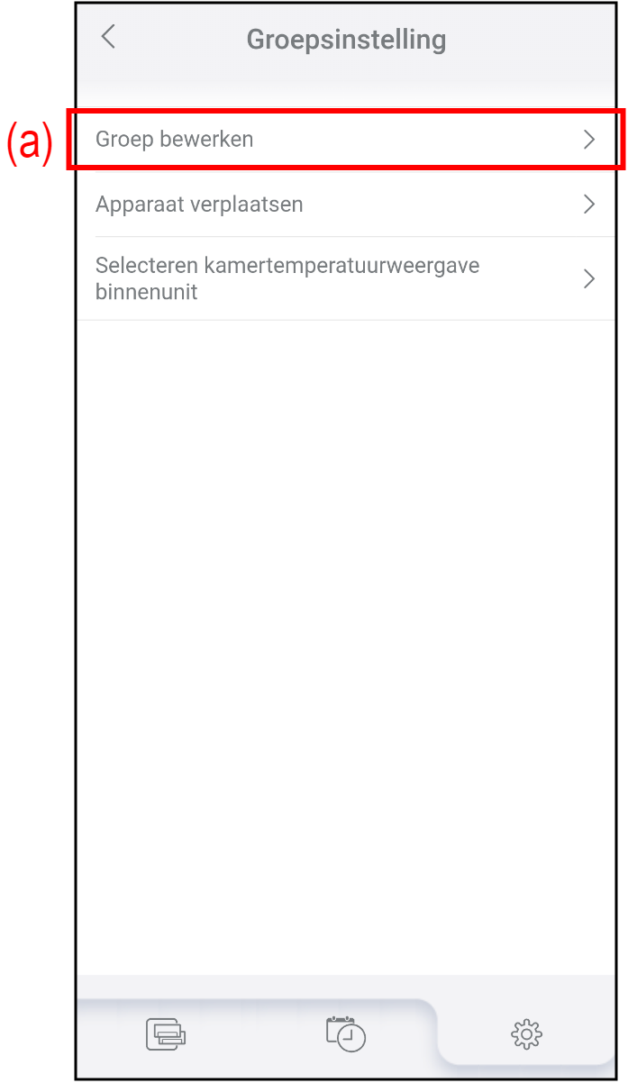 Tik op (a) in het scherm "Groepsinstelling".