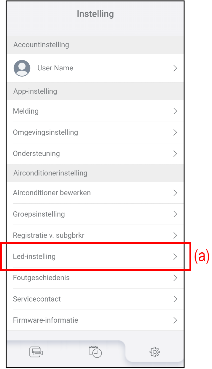 Tik op (b) om het WLAN-indicatielampje op de airconditioner aan of uit te zetten.