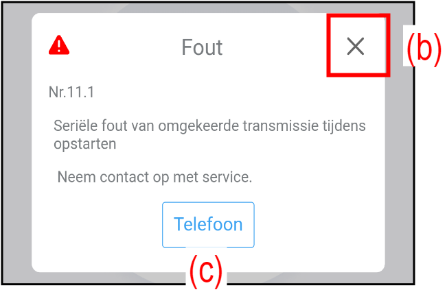 Tik op de knop (c) om de servicecontactpersoon te bellen.
