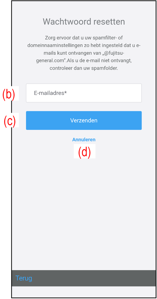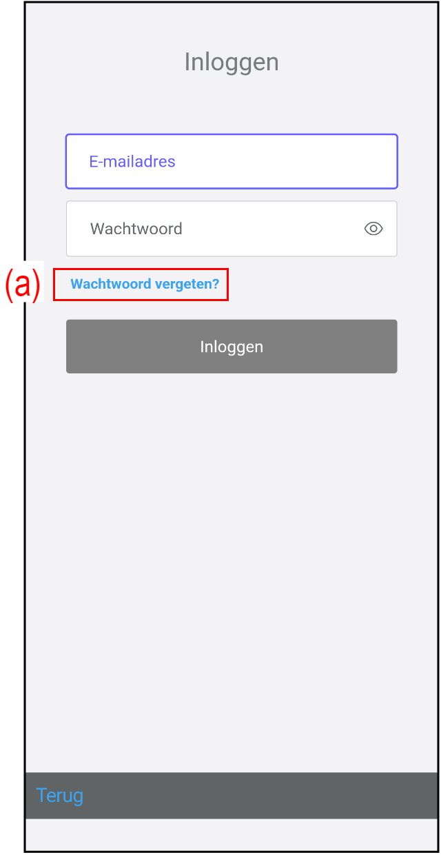 Om het scherm te sluiten zonder het wachtwoord opnieuw in te stellen, tik op deze knop.Tik op de link in het e-mailbericht.