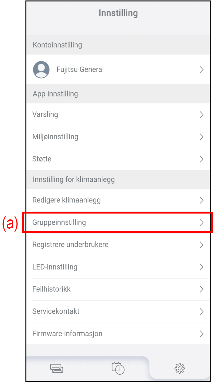 - Trykk på (a) på «Innstilling»-skjermen for å sjekke eller redigere gruppeinnstillingene.