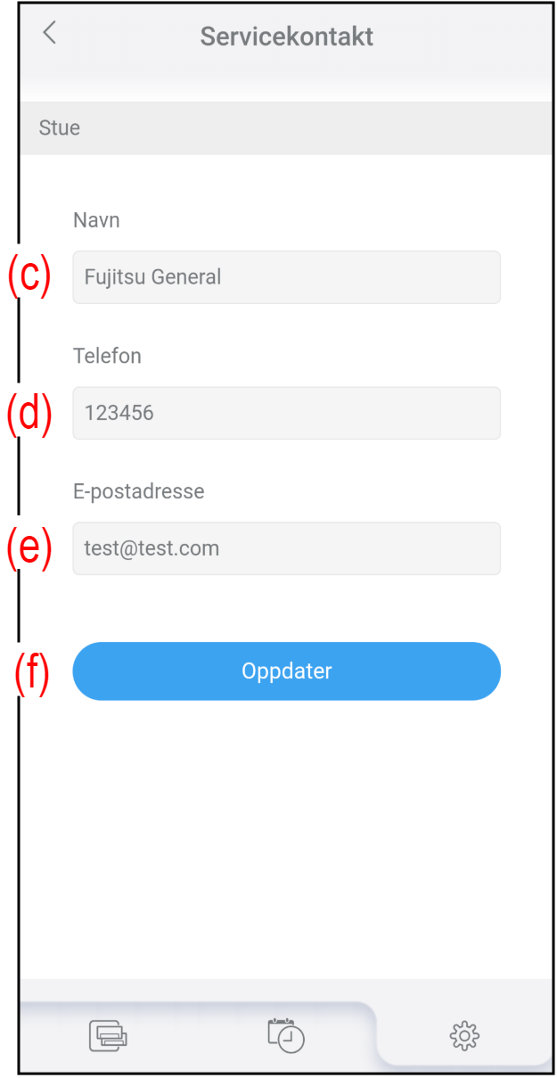 (d) Telefon Skriv inn telefonnummeret til servicepersonell eller til bedriften. (e) E-postadresse Skriv inn e-postadressen til servicepersonell eller til bedriften.
