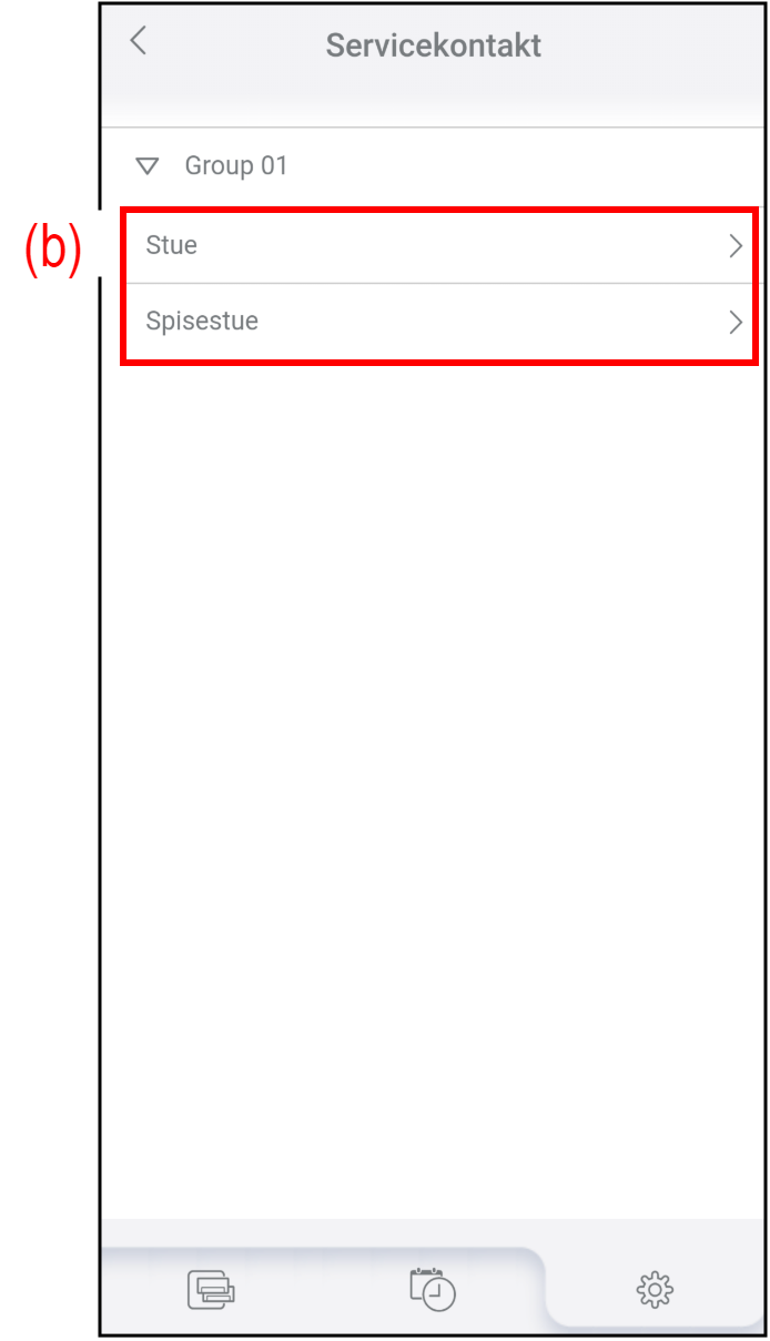- Trykk på (b) for å velge klimaanlegget du vil sjekke eller redigere informasjon om servicekontakten for.