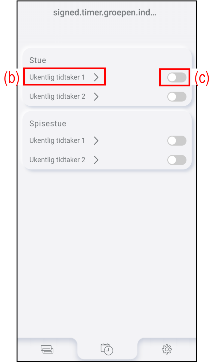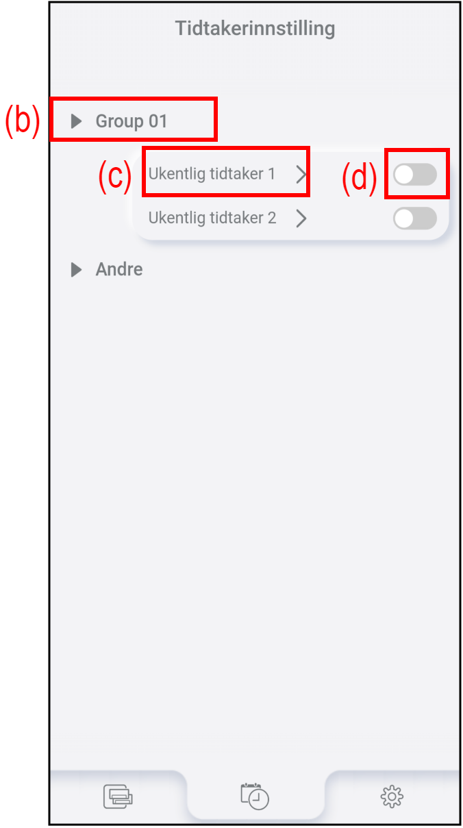 Hvis det angis en gruppe, går skjermen videre til innstillinger for gruppe-timer.