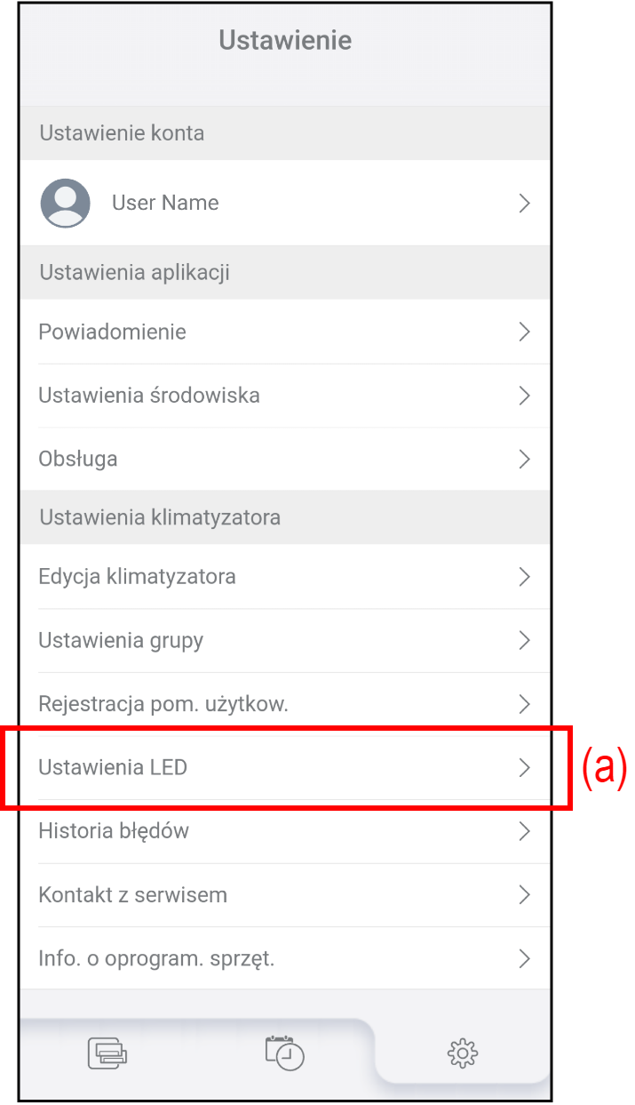 Dotknij (b), aby zaświecić lub zgasić kontrolkę WLAN na klimatyzatorze.