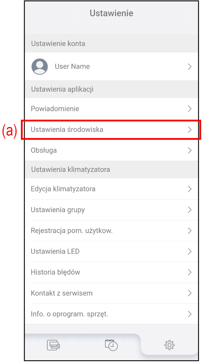 Na ekranie „Ustawienia środowiska” można korzystać z następujących funkcji: