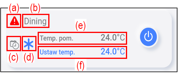 | (b) | Nazwa klimatyzatora | Pokazuje nazwę klimatyzatora. |