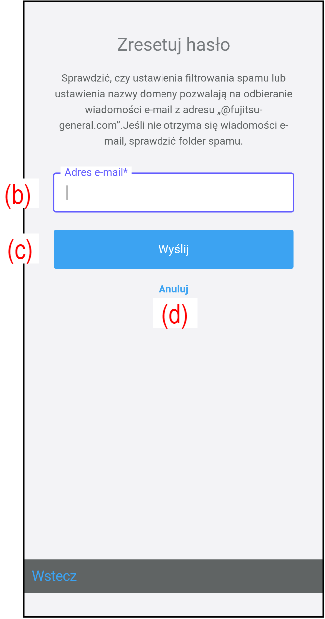 - Wprowadź swój adres e-mail w polu (b).