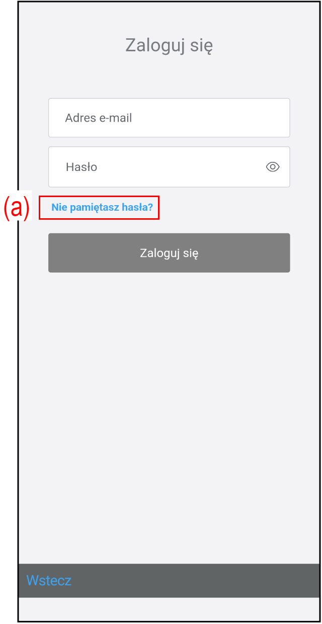 Aby zamknąć ekran bez resetowania hasła, dotknij tego przycisku.Dotknij linku w wiadomości e-mail.