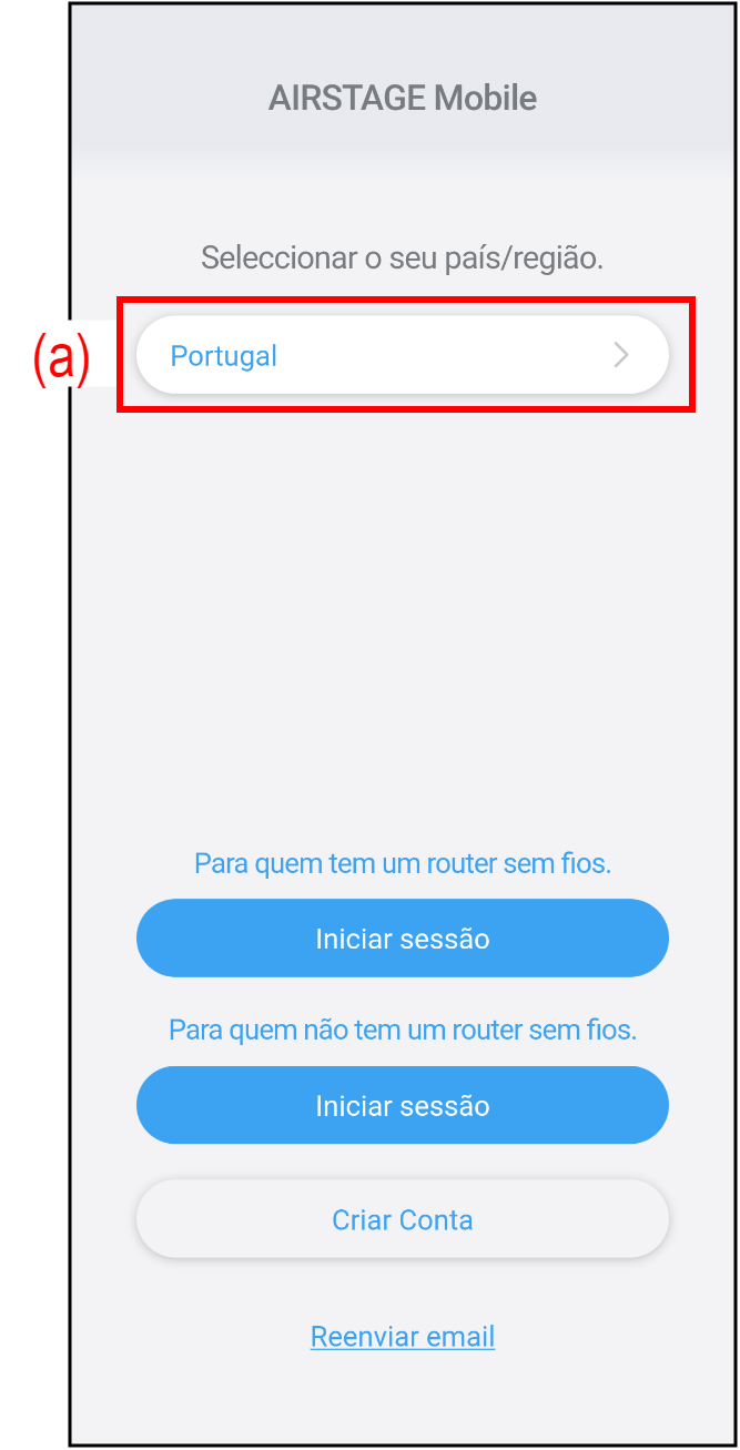 - Se tiver uma conta da AIRSTAGE Mobile, inicie sessão na AIRSTAGE Mobile. Consulte "Iniciar sessão" para mais informações.