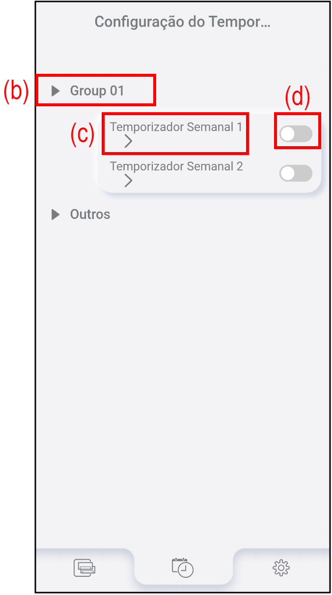 Toque em (c) para ativar/desativar o Temporizador Semanal.