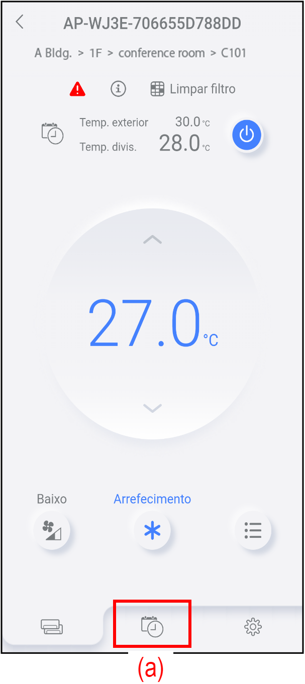 Pode definir o Temporizador semanal para cada aparelho de ar condicionado tocando no nome do mesmo.