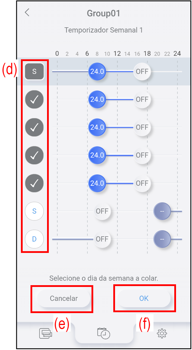 - Selecione o dia da semana (d) para o qual pretende efetuar a cópia.