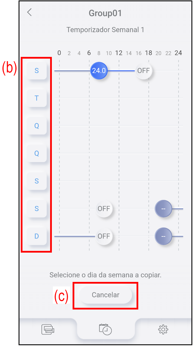 - Selecione o dia da semana (b) a partir do qual pretende efetuar a cópia.