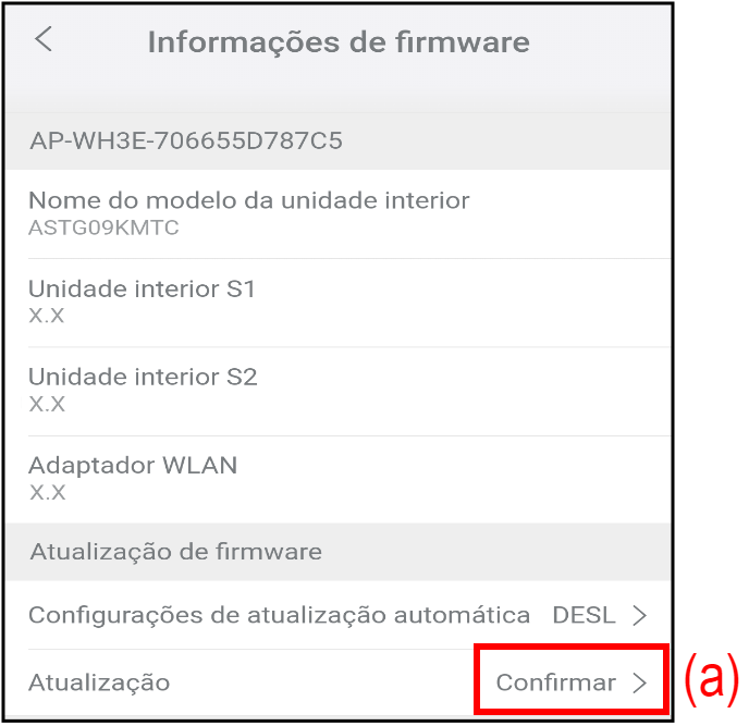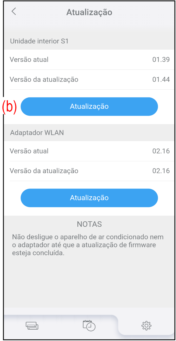 Pode atualizar o firmware da unidade interior e do adaptador WLAN manualmente.