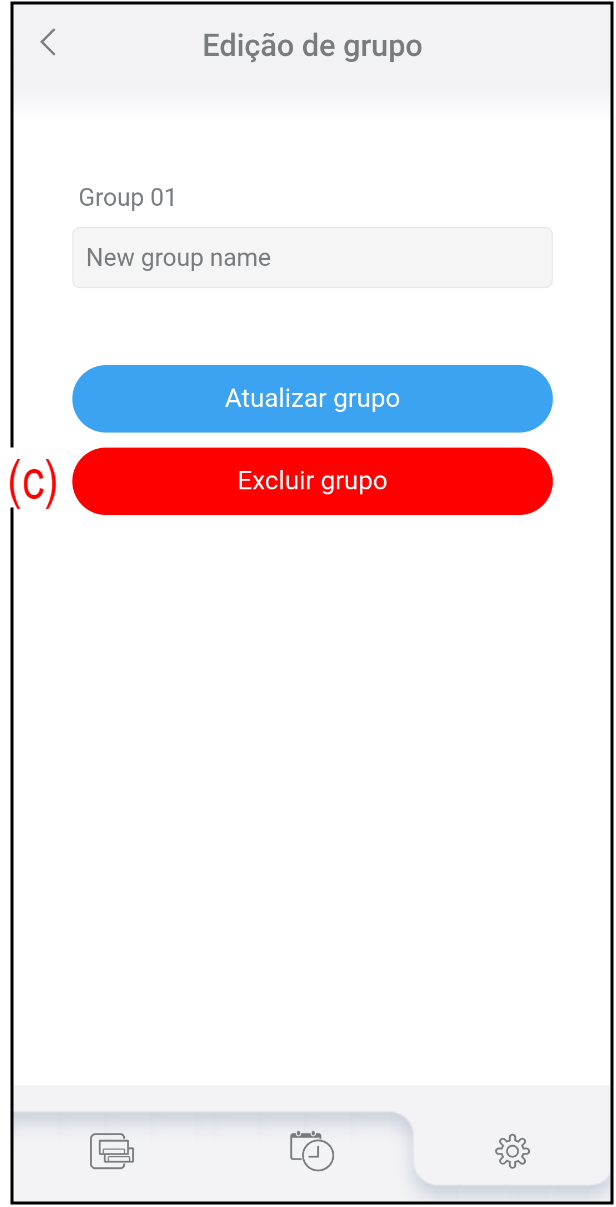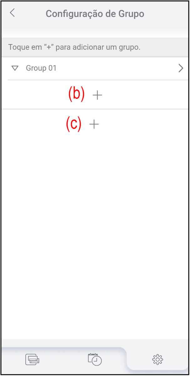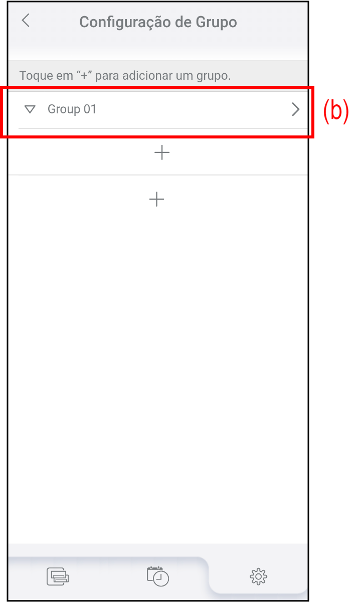 Toque em (a) no ecrã "Configuração de Grupo".