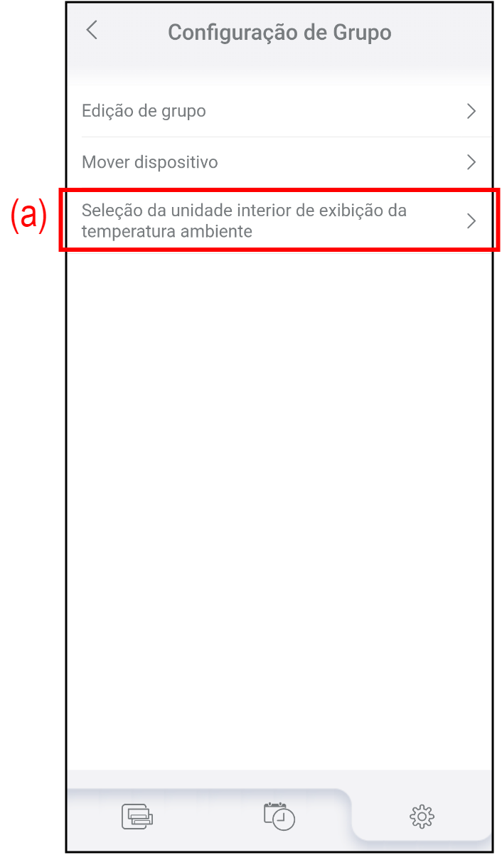 Pode selecionar o aparelho de ar condicionado representante de um grupo. A exibição da temperatura ambiente do grupo é a temperatura medida pelo aparelho de ar condicionado representante.