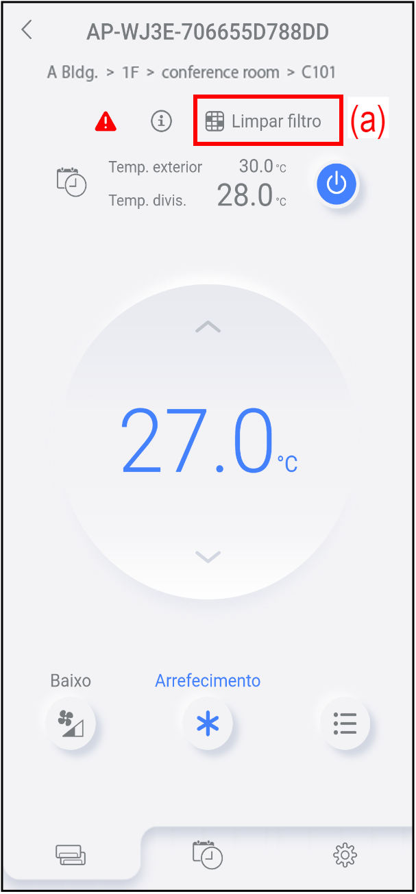 Limpe o filtro do aparelho de ar condicionado e, em seguida, toque em [OK].