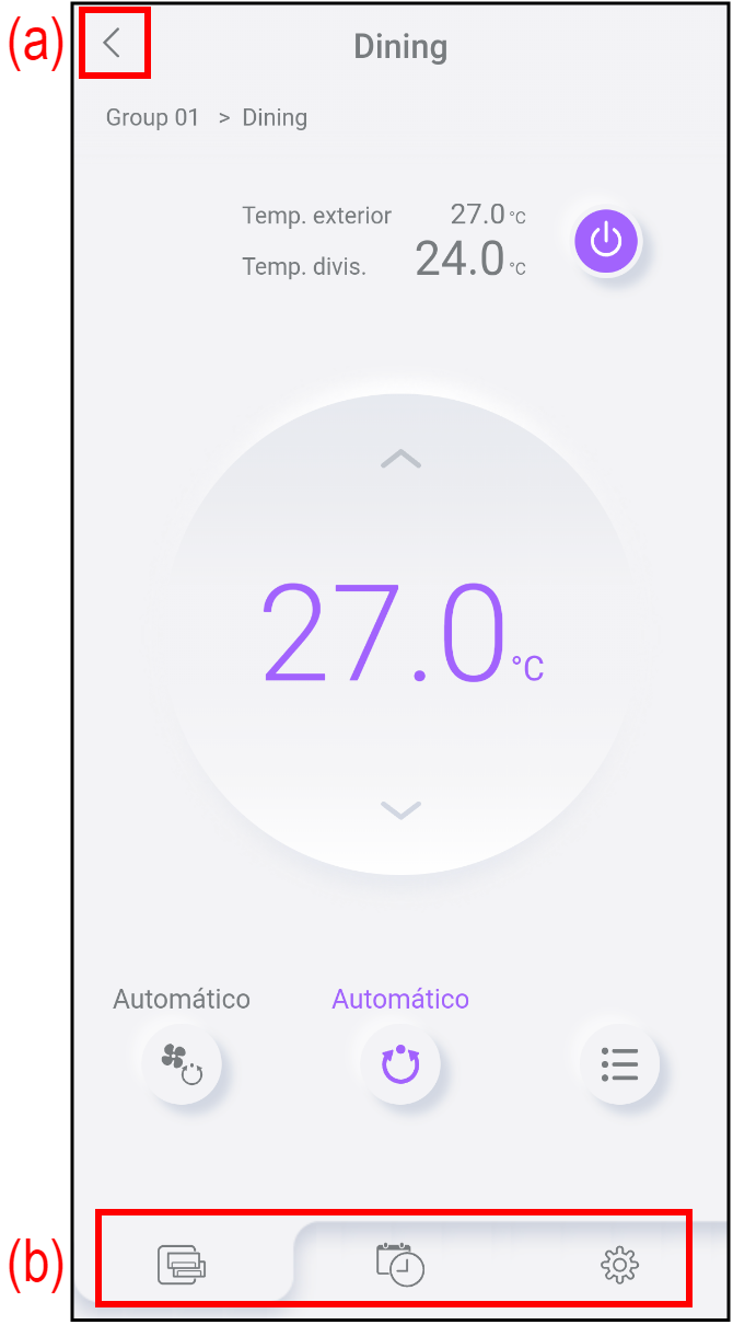 Pode verificar o estado de funcionamento dos aparelhos de ar condicionado e utilizar os aparelhos a partir deste separador. Consulte "MENU INÍCIO" e "Configurações de funções" para mais informações. * Quando o grupo é definido, o ícone muda. |