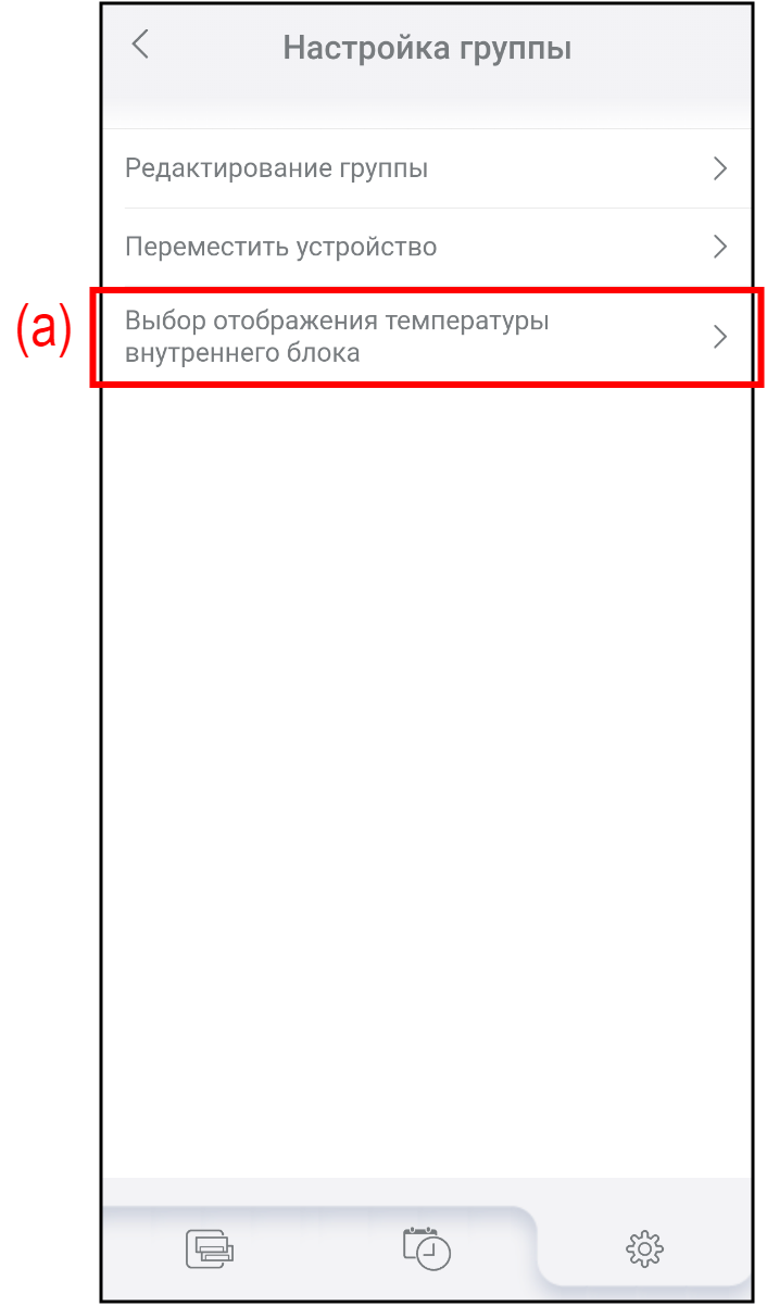Здесь вы можете выбрать представительный кондиционер воздуха в группе. Для отображения температуры в помещении для группы используется температура, измеренная представительным кондиционером воздуха.