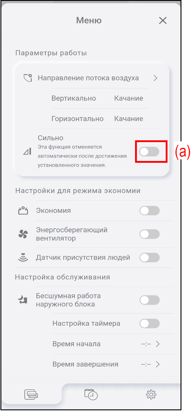 Нажмите (a), чтобы запустить/остановить режим «Сильно».