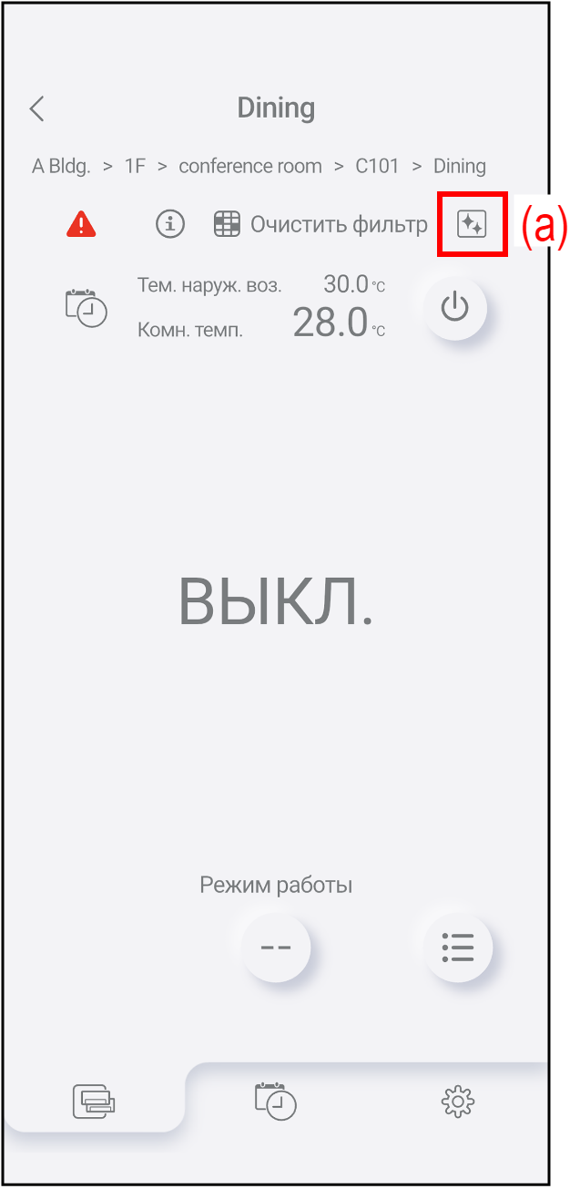 Нажмите на значок (a), чтобы открыть окно «Внутренняя очистка».