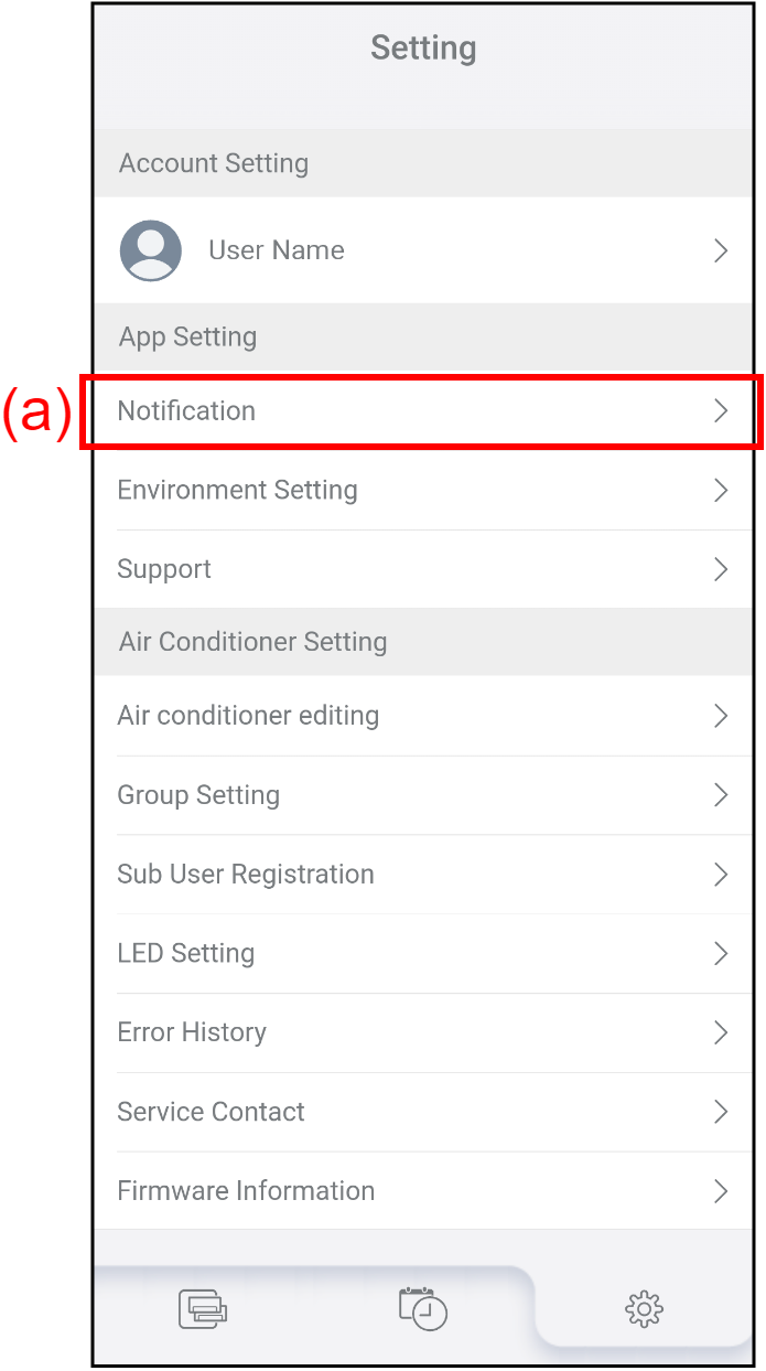 Klepnutím na (a) na obrazovke „Setting“ skontrolujte predchádzajúce oznámenia.