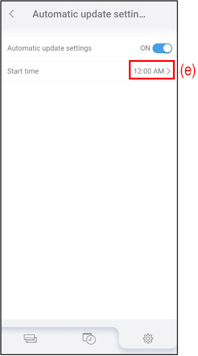 - Dotaknite se (e), da nastavite čas začetka samodejne posodobitve vdelane programske opreme.