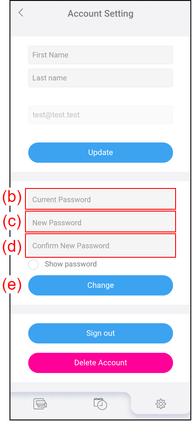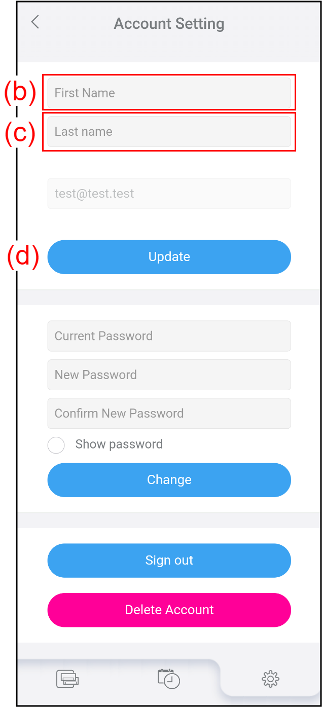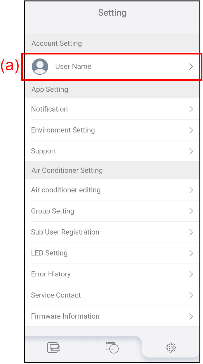 แตะ (a) บนหน้าจอ “Setting” เพื่อเปลี่ยนข้อมูลบัญชีและรหัสผ่านของคุณ