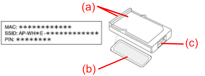 (b) ป้ายข้อมูลอะแดปเตอร์ (ติดอยู่กับอะแดปเตอร์ WLAN ด้วยเทป)