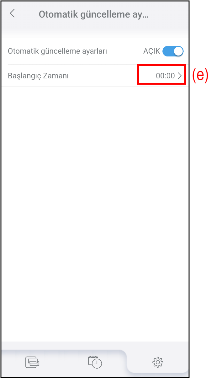 - Otomatik donanım yazılımı güncellemesini başlatma zamanını ayarlamak için (e) düğmesine basın.