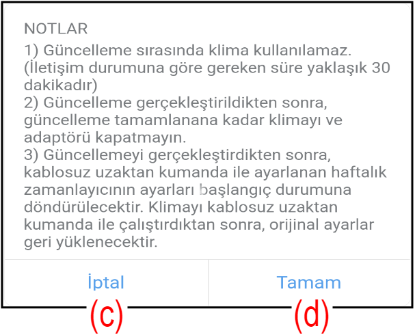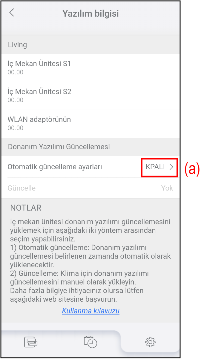 Klimanın ve WLAN adaptörünün otomatik donanım yazılımı güncellemesini başlatmak için bir zaman belirleyebilirsiniz.