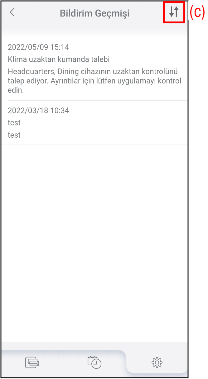 Geçmişteki bildirimleri kontrol etmek için "Ayar" ekranındaki (a) düğmesine basın.
